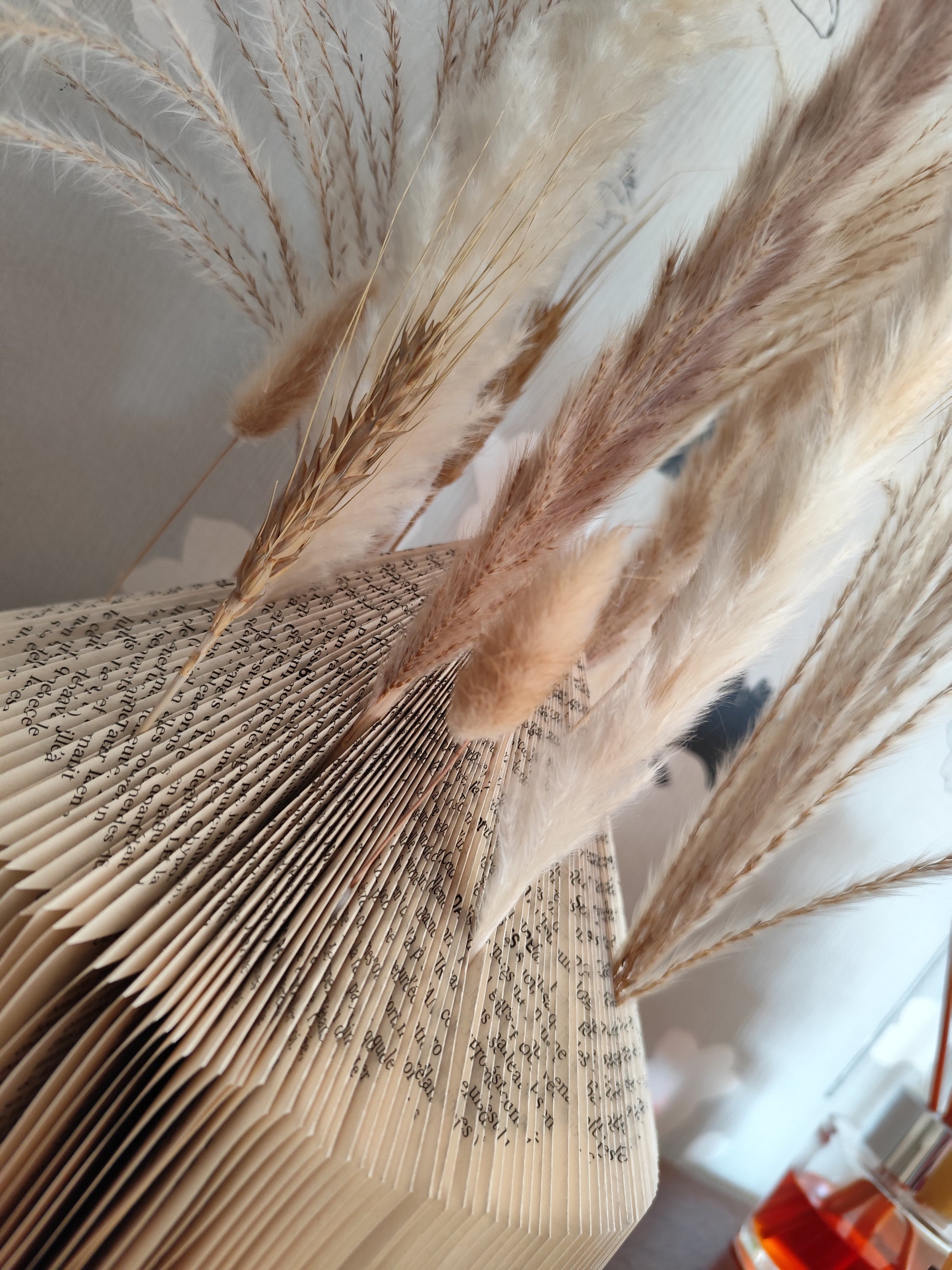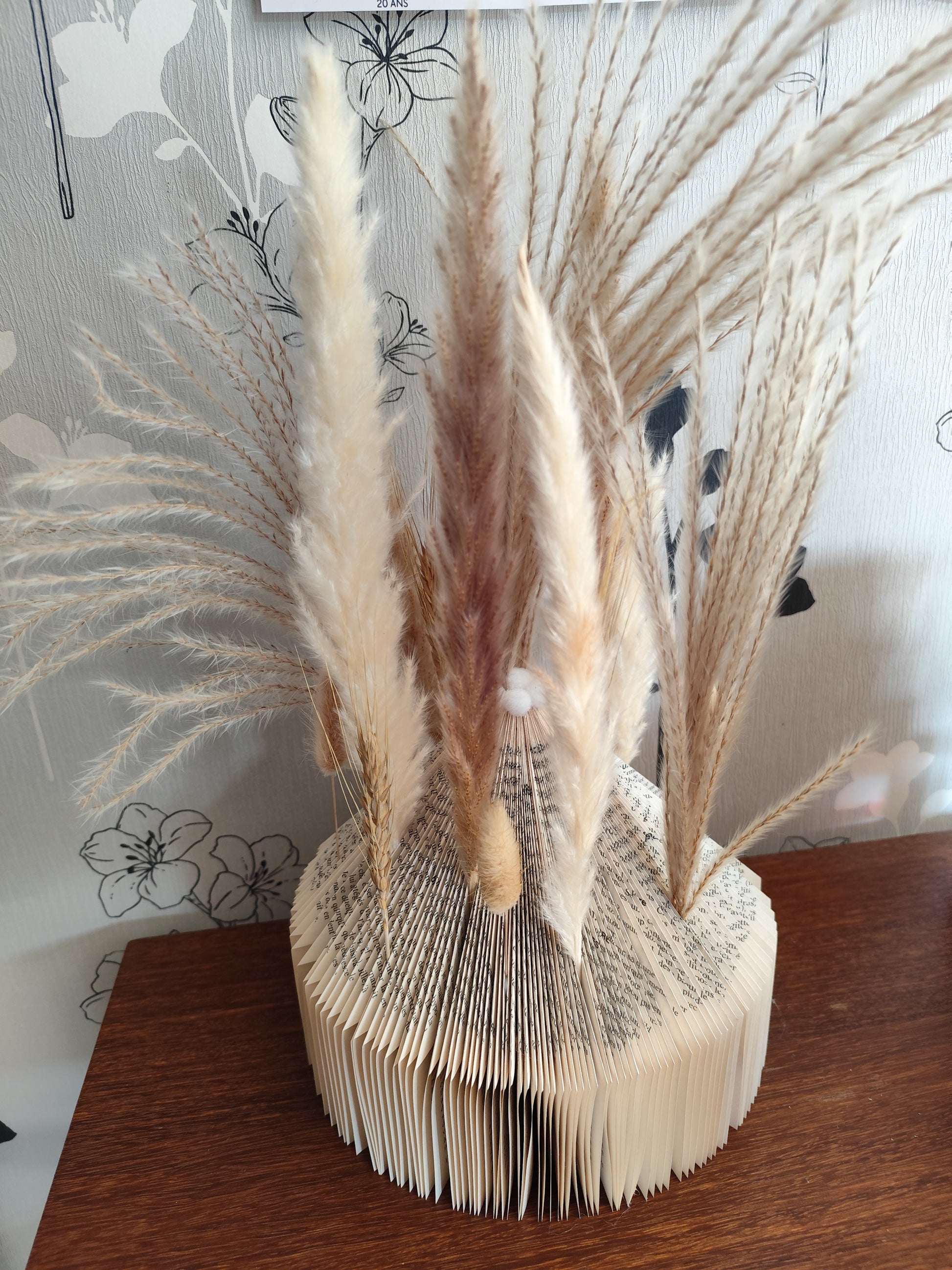 Chaque exemplaire est réalisé à partir d’un livre soigneusement plié à la main, transformé en une œuvre décorative unique.